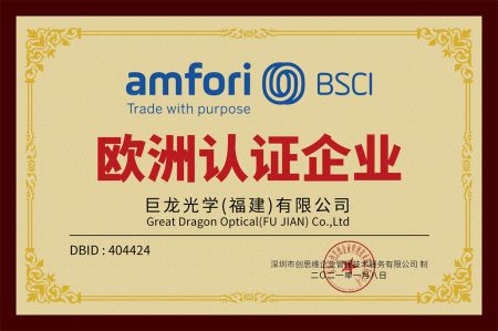 巨龍光學有限公司始終堅持“真誠、雙贏、創新敬業”的經營理念,率先獲得眼鏡企業生產許可證,并通過ISO9000質量體系認證和CE認證。