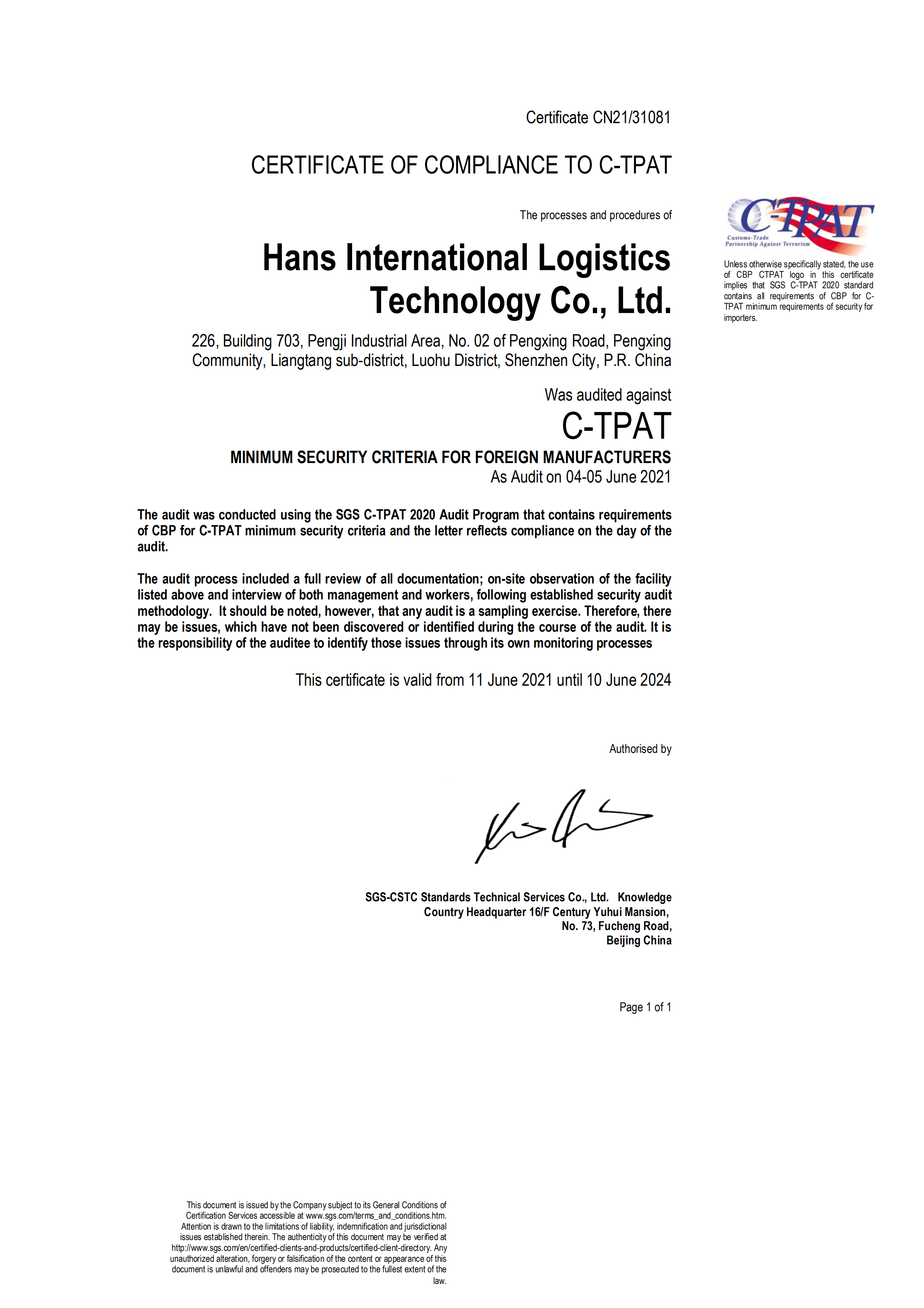 祝深圳市安拓浦科技有限公司通過(guò)BSCI驗(yàn)廠與SGS C-TPAT認(rèn)證,C-TPAT證書(shū)取得行業(yè)最高100分