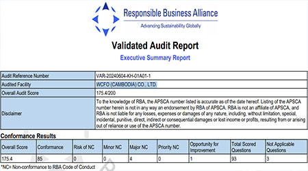 祝賀華耀(柬埔寨)有限公司 WCFO (CAMBODIA) CO., LTD. 2024年快速通過(guò)RBA認(rèn)證并順利取得銀牌