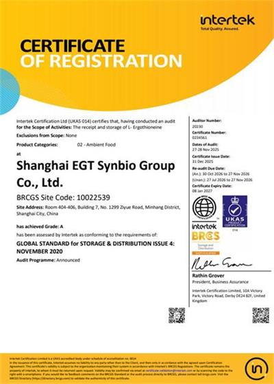 在創思維驗廠網老師專業技術、全程跟進耐心細致輔導以及公司全體員工配合下,一次性順利通過BRC認證并取得A級證書,為將來公司發展奠定了良好的發展基礎,既開拓了市場同時也增加了消費者對公司的信賴,在這里再次祝賀上海麥角硫因科技有限公司2025年一次性成功通過BRC認證并取得A級證書,同時也期待未來再次與創思維驗廠網合作!