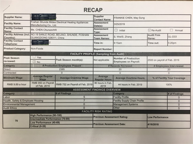 恭祝美的電熱電器制造有限公司順利通過UL costco驗廠