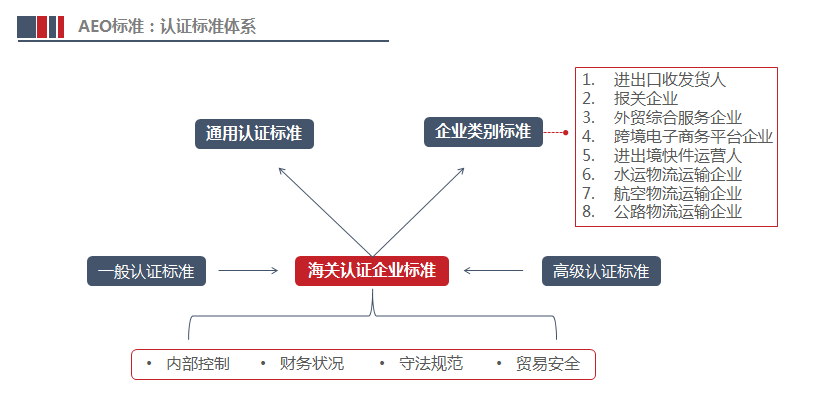 截至目前,《海關認證企業標準》體系為“1+8”模式,即,通用標準加進出口收發貨人、報關企業、外貿綜合服務企業、跨境電子商務平臺企業、進出境快件運營人、水運物流運輸企業、航空物流運輸企業、公路物流運輸企業8個單項標準。